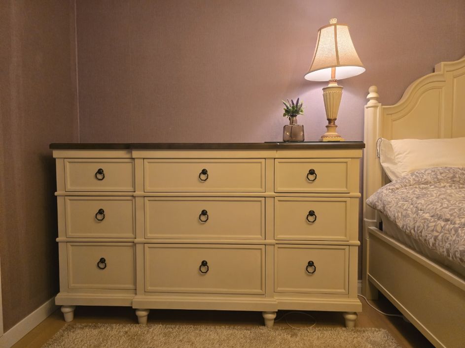 가구스타일이 원하던 색감과 느낌이라 매우 만족스럽습니다 .방분위가 한층 단정하고 세련되게 바뀌었고 수납공간도  늘어나서 좋아요 . 딸방도 미라지 가구로 바꾸어 주고 싶네요
