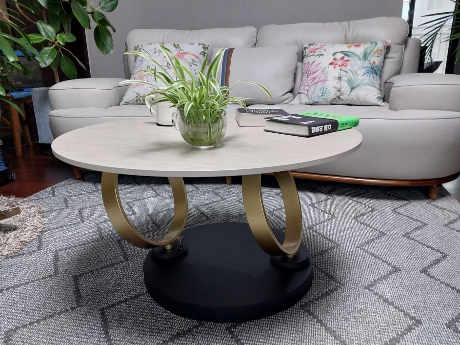 테이블을 견고하게 지탱해 주는 골드 및 블랙 메탈 베이스는 안정감은 물론, 세련된 분위기를 연출하는 신의 한 수입니다. 인테리어 감각이 돋보이는 디자인 덕분에 매일 거실을 볼 때마다 뿌듯하고 행복합니다.