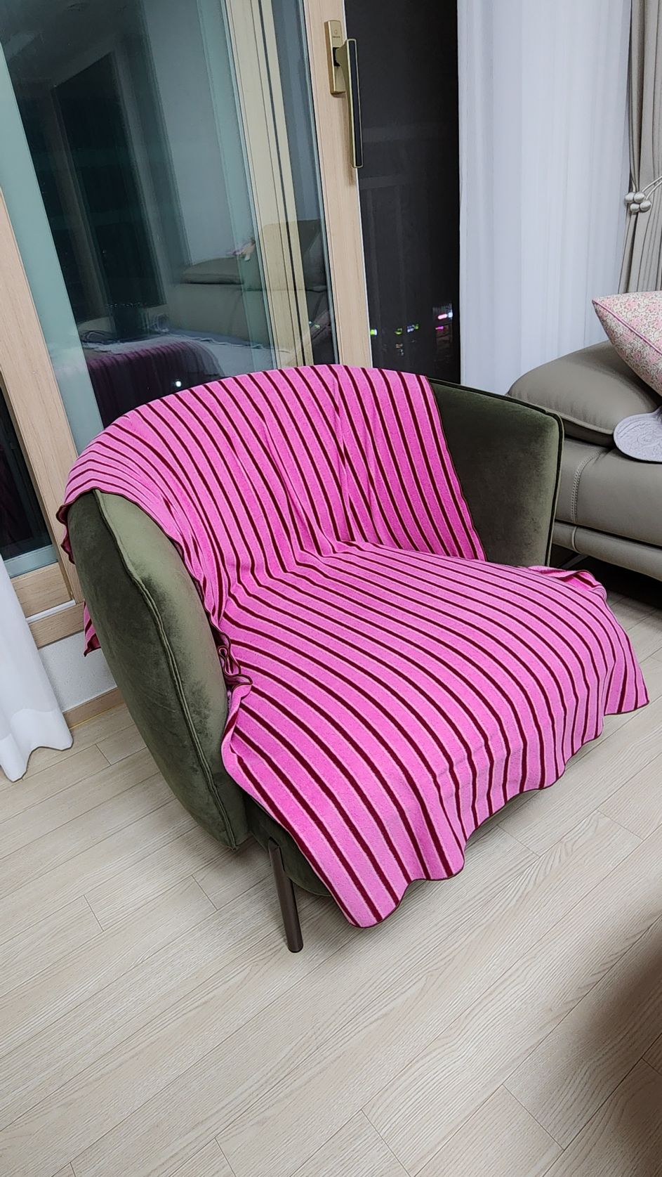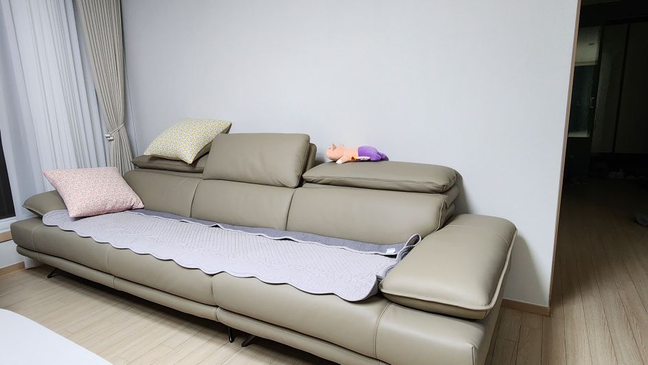 거실의 중심인 소파는 디자인만큼 착석감이 중요한데, 너무 푹 꺼지지 않고 적당히 탄탄해서 허리가 정말 편해요. 가죽소재가 부드러우면서도 오염에 강해 보여서 관리하기도 편할 것 같고, 거실 분위기를 차분하게 잡아주네요. 퇴근하고 소파에 누워있는 시간이 제일 행복합니다.