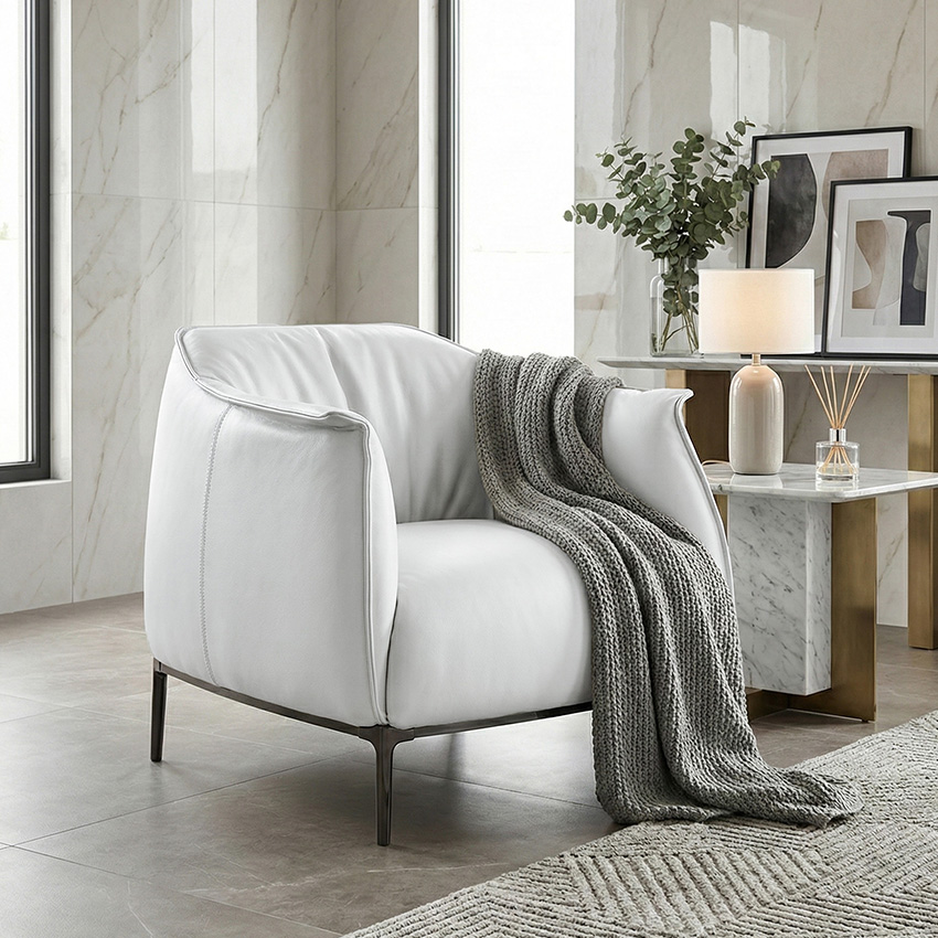 Alvano-Snow Leather Single Chair