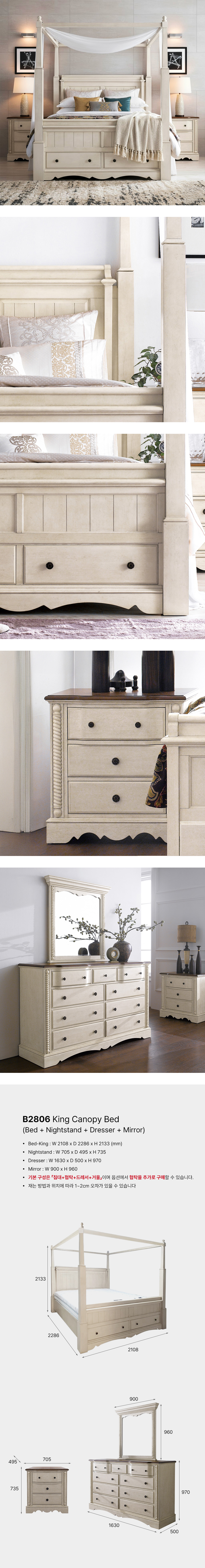 B2806 King Canopy Bed (침대+협탁+화장대)