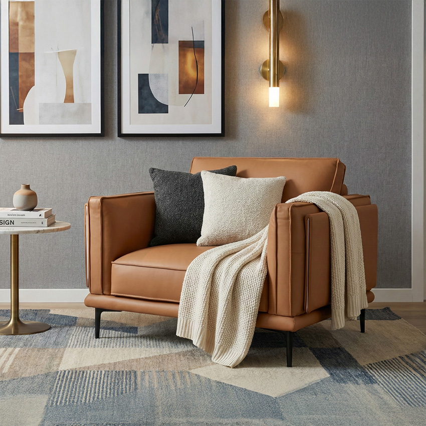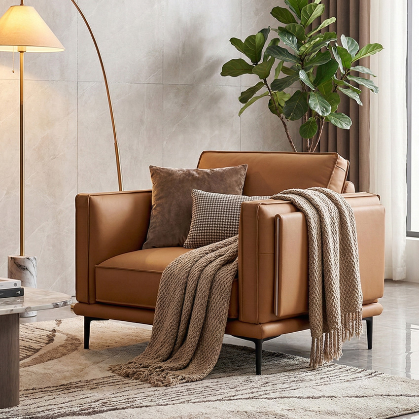 Bella-1S-Brown Leather Single Chair