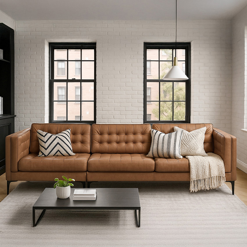 10219-4S-Brown Leather Sofa
