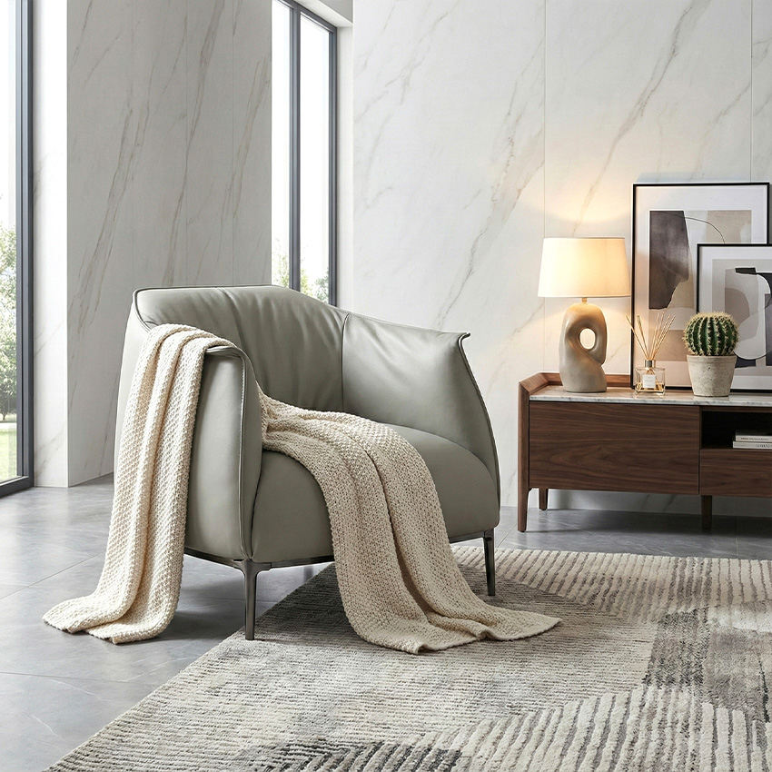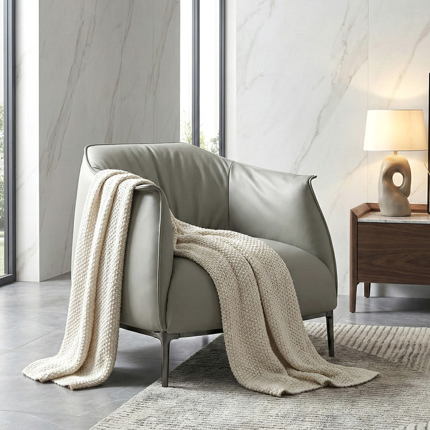 Alvano-White Leather Single Chair