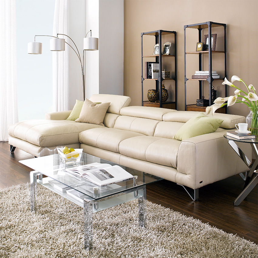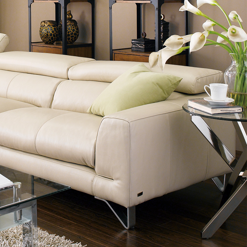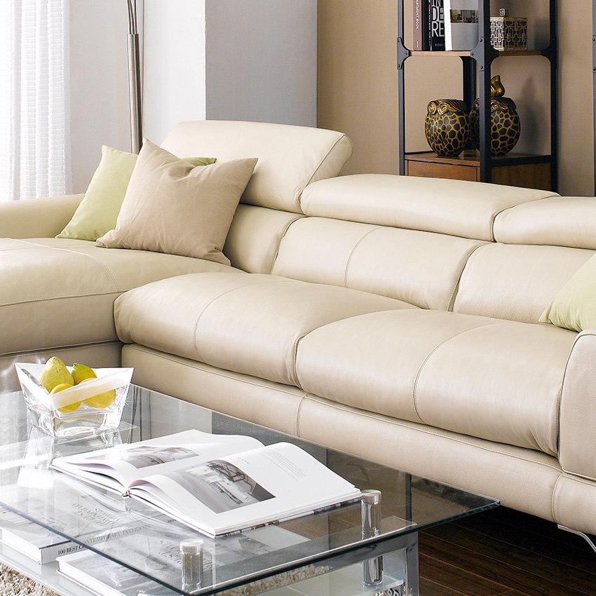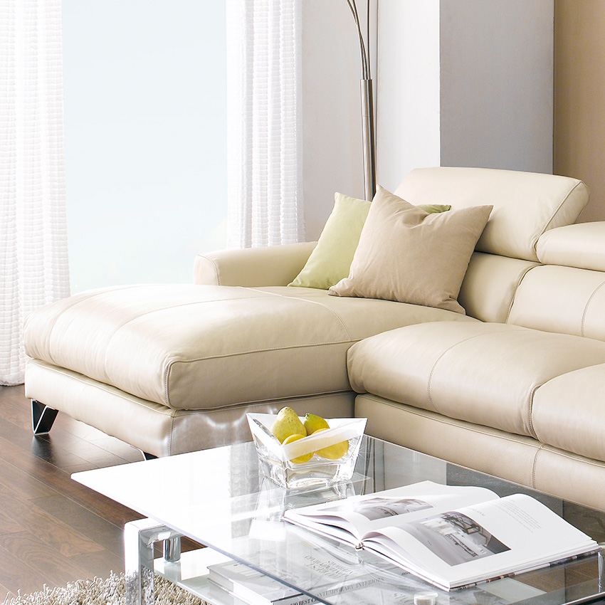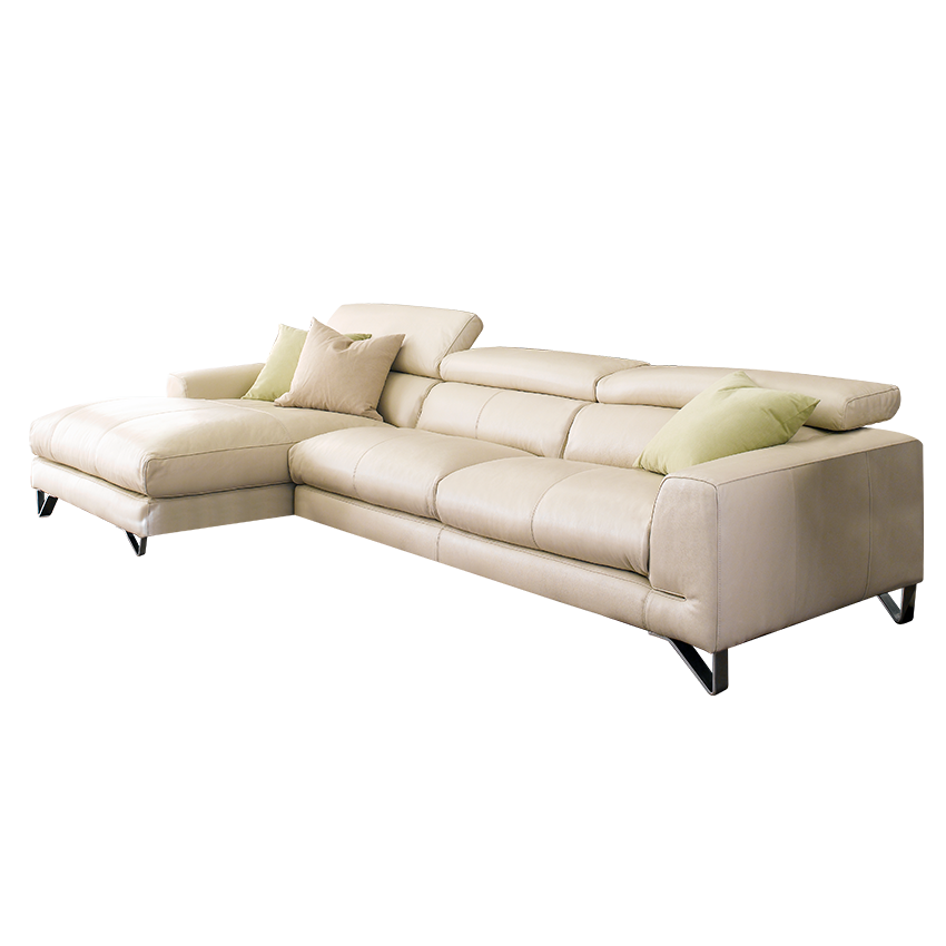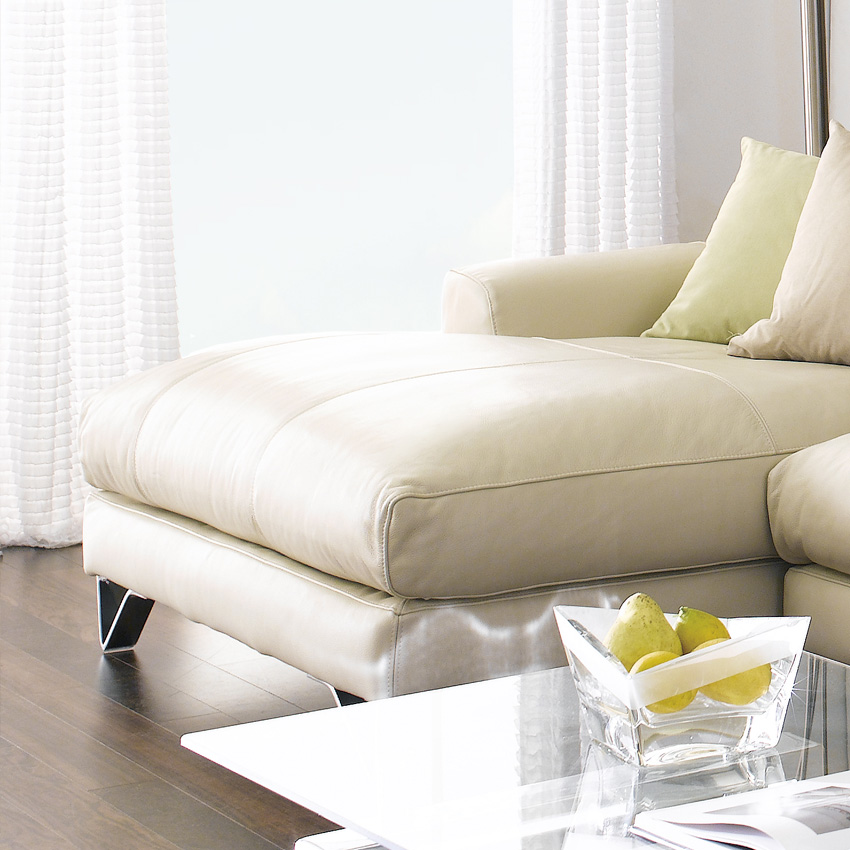 MU-A0030-IvoryLeather Chaise Sofa