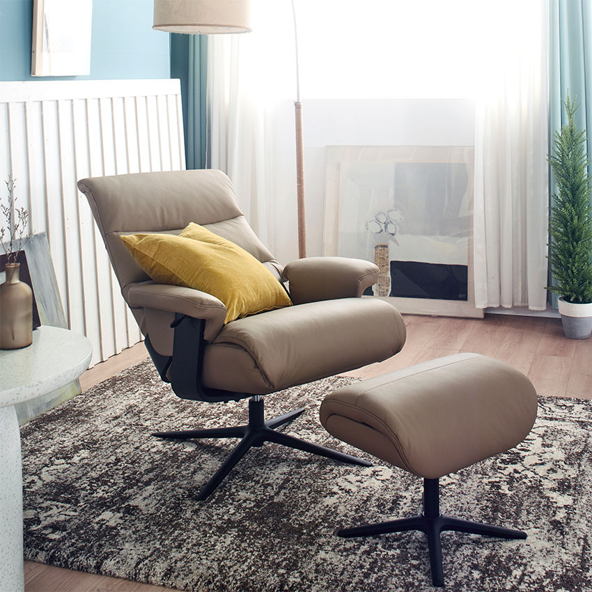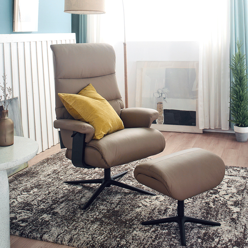 Alpha-334-Nomad Leather Recliner Chair w/ Ottoman