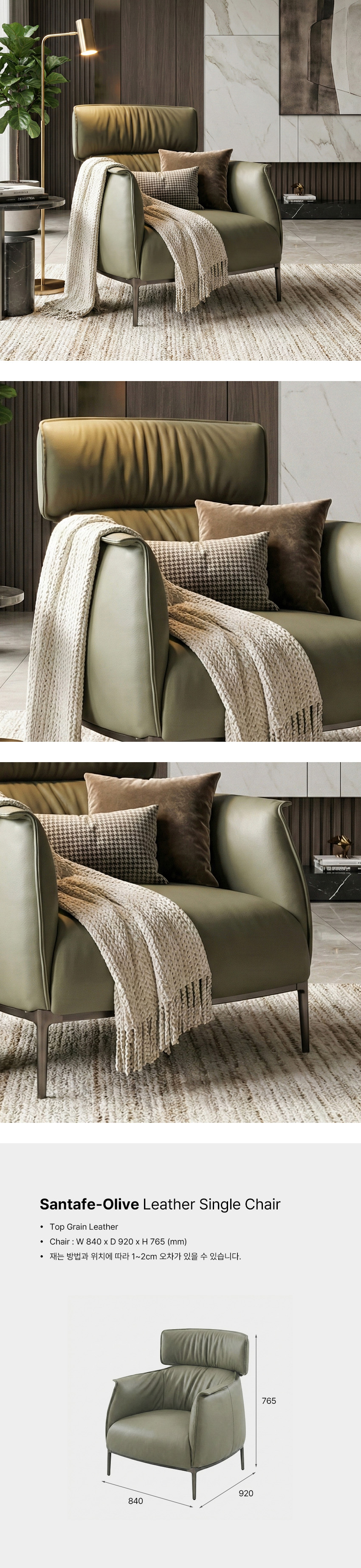 Santafe-Olive Leather Single Chair